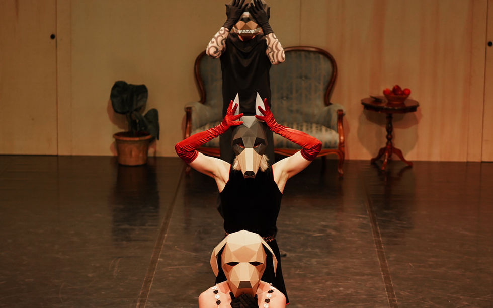 Three Dogs explores the shifting landscapes of identity through the lens of Freud’s id, ego, and superego. Three dancers wear masks embodying different canine species: the Labrador as innocence, curiosity, and naivety (id); the Doberman as order, reputation, and desire (ego); and the Rottweiler as aggression, violence, and pleasure (superego). Together, they weave a choreography that questions how instinct, control, and morality wrestle within us—sometimes in harmony, often in conflict.